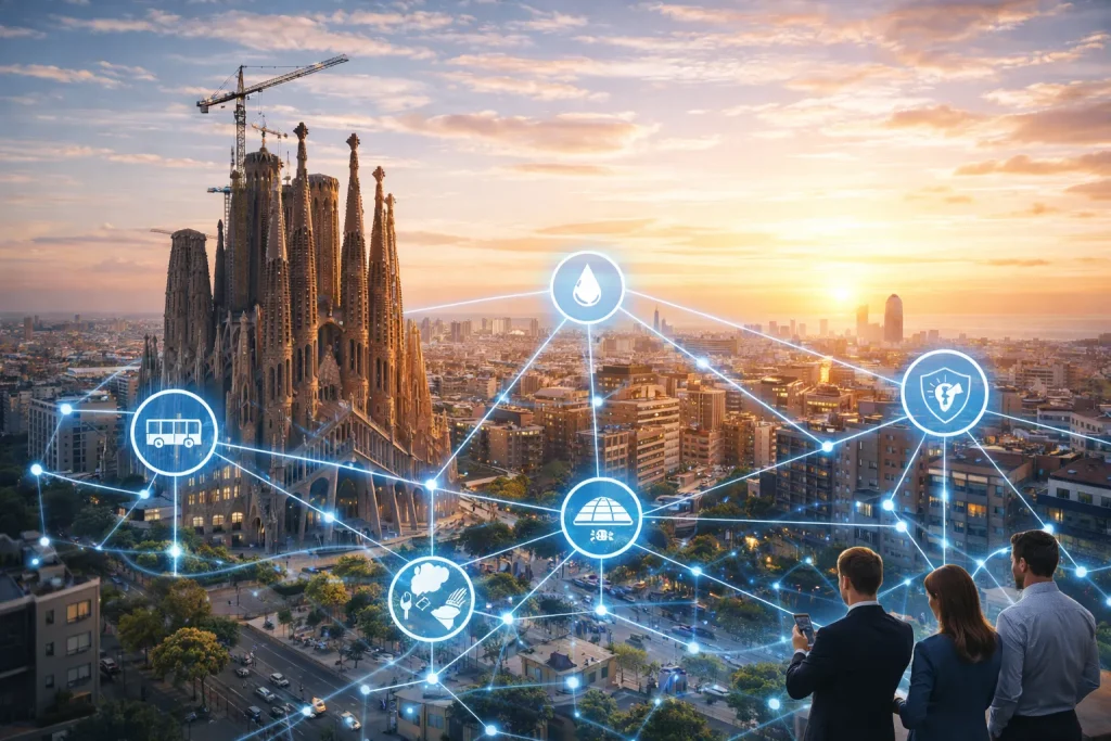 Barcelona is often cited as a pioneer in smart city strategy. The city’s comprehensive program (dating back over a decade) shows the impact of strong political will, integration across departments, and citizen-centric design. Barcelona’s City Council set up a dedicated Smart City initiative that identified 12 key domains for intervention – including mobility, environment, energy, water, waste management, urban public space, and open government – and launched 22 ambitious programs comprising over 80 pilot projects. At the heart of Barcelona’s approach is a unified ICT architecture sometimes called a “network of networks.” Rather than deploying siloed tech in each department, Barcelona built a city-wide platform (based on an open-source urban data hub called Sentilo) that interconnects formerly separate IoT systems – from smart street lighting to irrigation sensors – into one integrated network. This integration broke down data silos and allowed the city to manage resources in a coordinated way. For example, data from buses, traffic sensors, and streetlights can be combined to optimize traffic flow and pedestrian safety in real time.