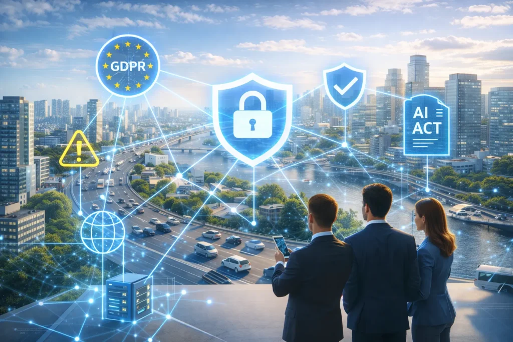 Implementing smart city technologies at scale brings significant governance and policy challenges. Municipalities must navigate privacy concerns, cybersecurity risks, and regulatory requirements while deploying IoT and AI solutions. In the European Union, several regulations directly impact smart city initiatives and impose obligations to protect citizens and critical systems: